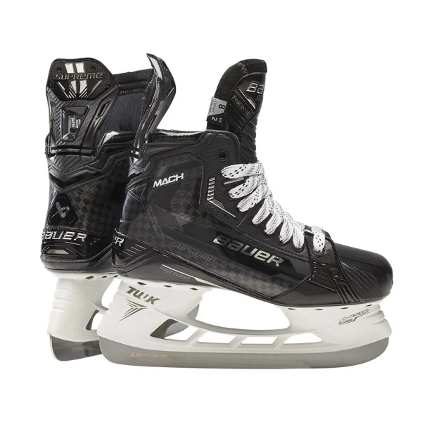 Der MACH Skate ist ein komplett neu entwickelter Skate für den Pro/Elite Spieler. bei diesem Schlittschuh ist powerful Skating angesagt. Durch das AMP Flex Facing, einer speziellen Flex Zone zwischen der zweiten und dritten Öse, wird die Vorwärtsbewegung vereinfacht und mehr Bewegungsfreiheit ermöglicht. Die Powercoil Zunge mit dem neuen Einsatz sorgt für eine schnellere Rückstoßgeschwindigkeit, die dem Spieler hilft, den Skate effizienter zu flexen und zu laden. Die Unibody Powerstrap Technologie steht für mehr Steifigkeit im unteren Teil des Skates und optimiert die Kraftübertragung.