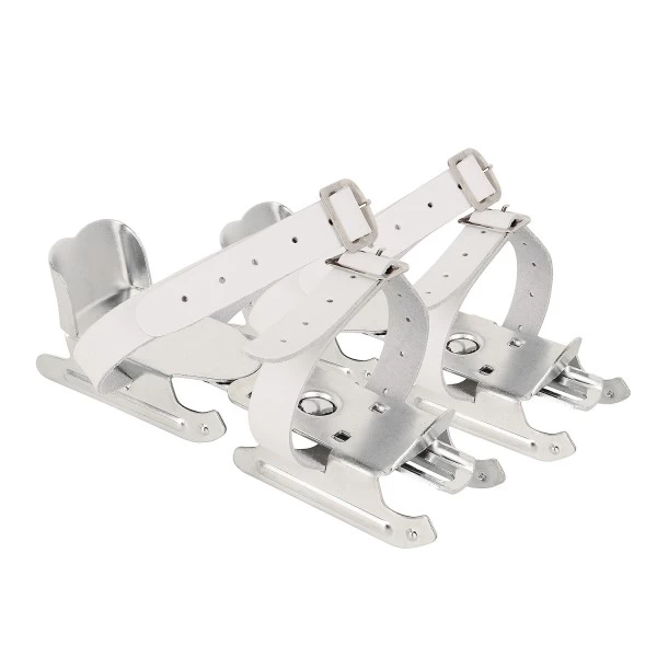 Über Zwei Riemen wird der Schuh auf dem Skate befestigt. Die Zwei-Kufen Konstruktion bietet ausreichend Stabilität und Sicherheit.